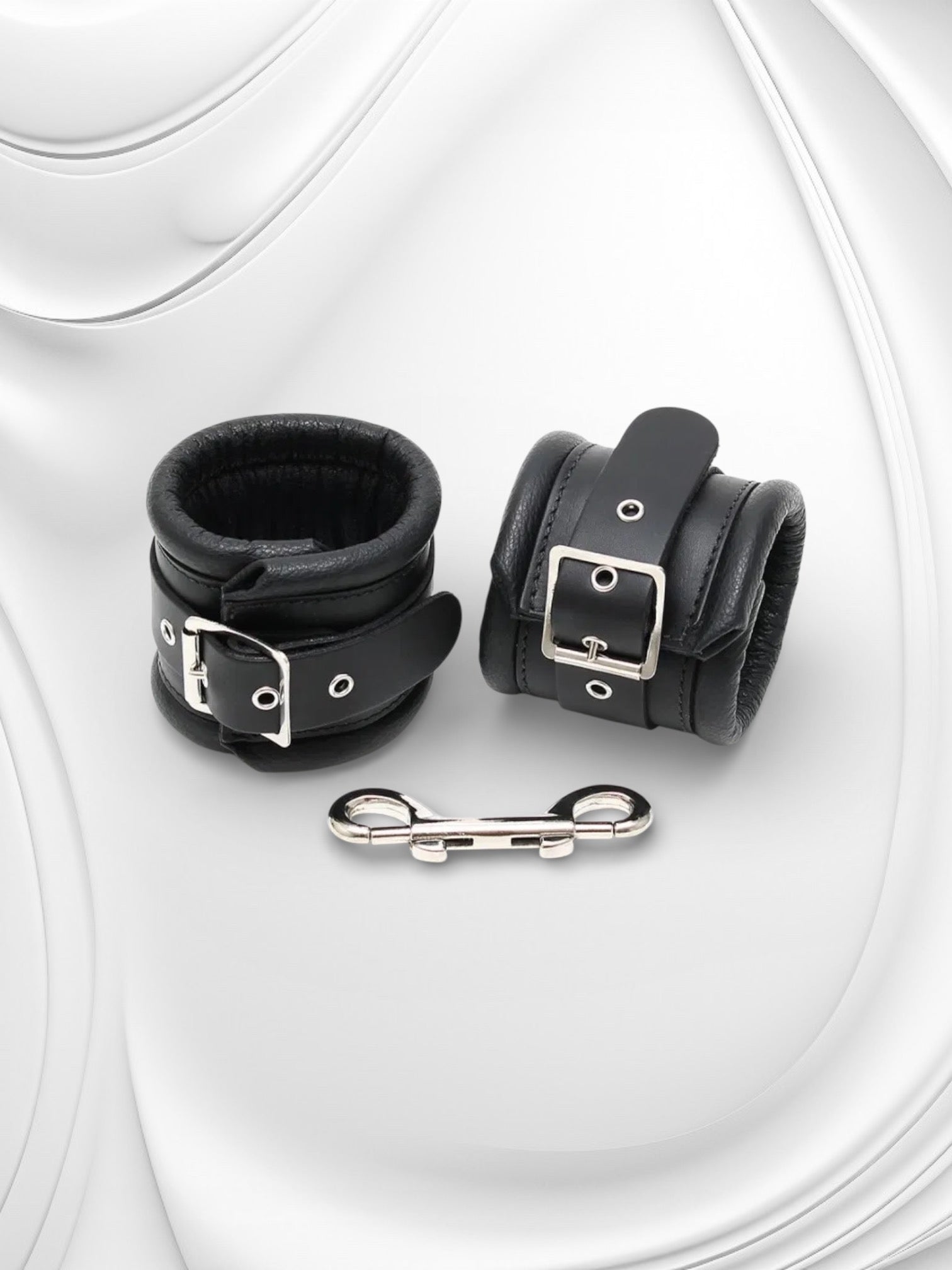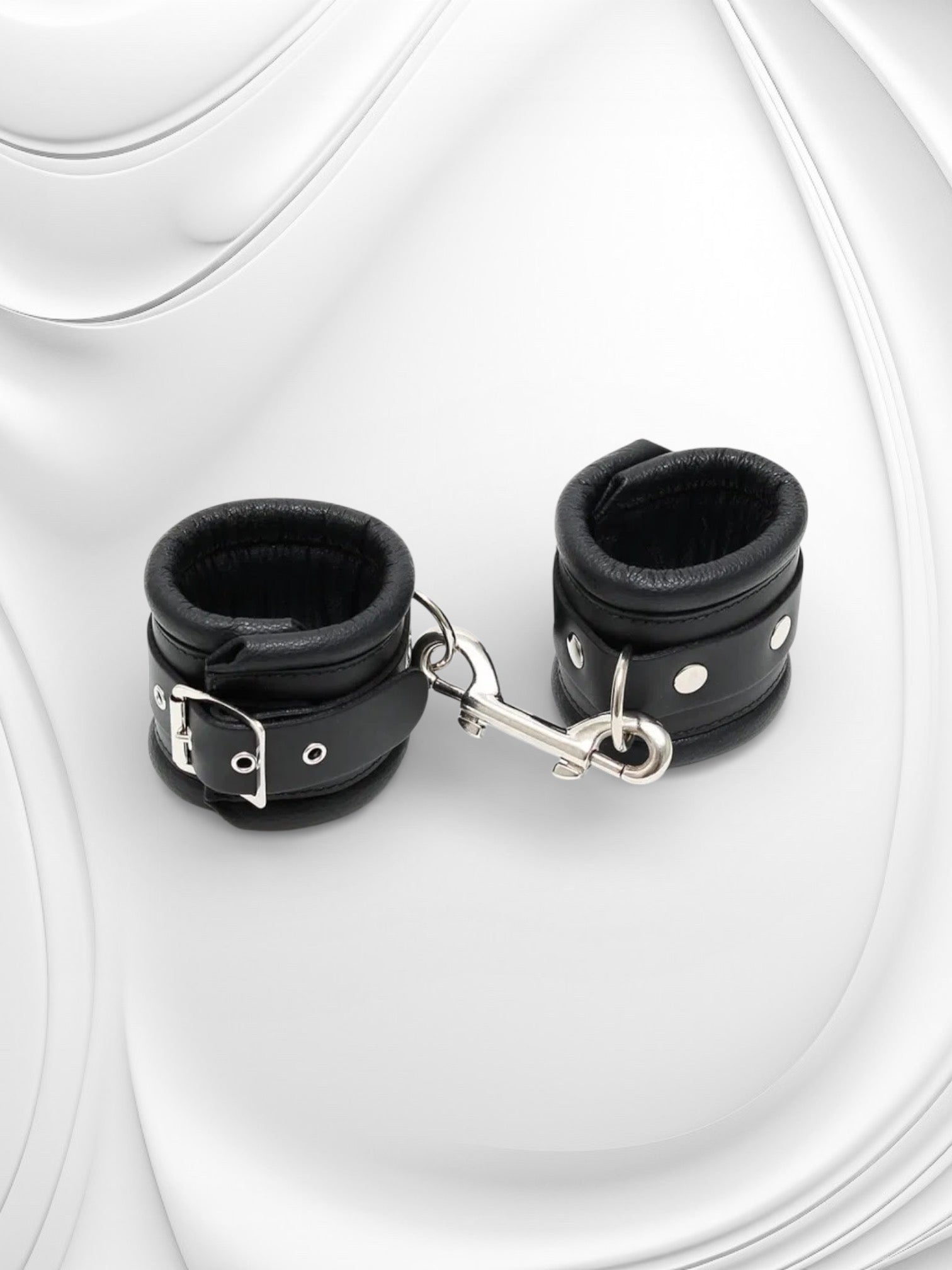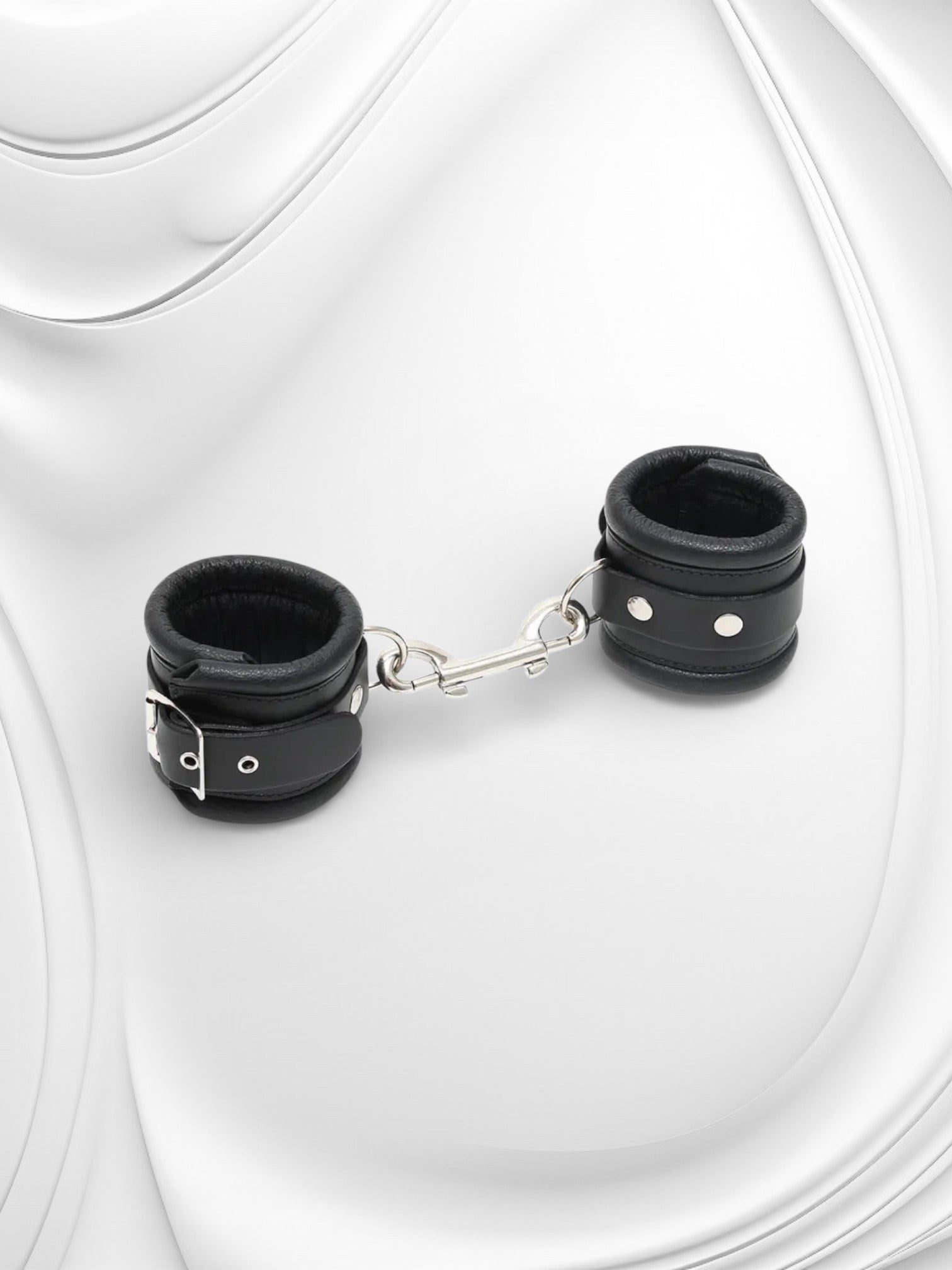 Luxe leren handboeien met ketting voor veilige, comfortabele en spannende bondage-ervaringen.